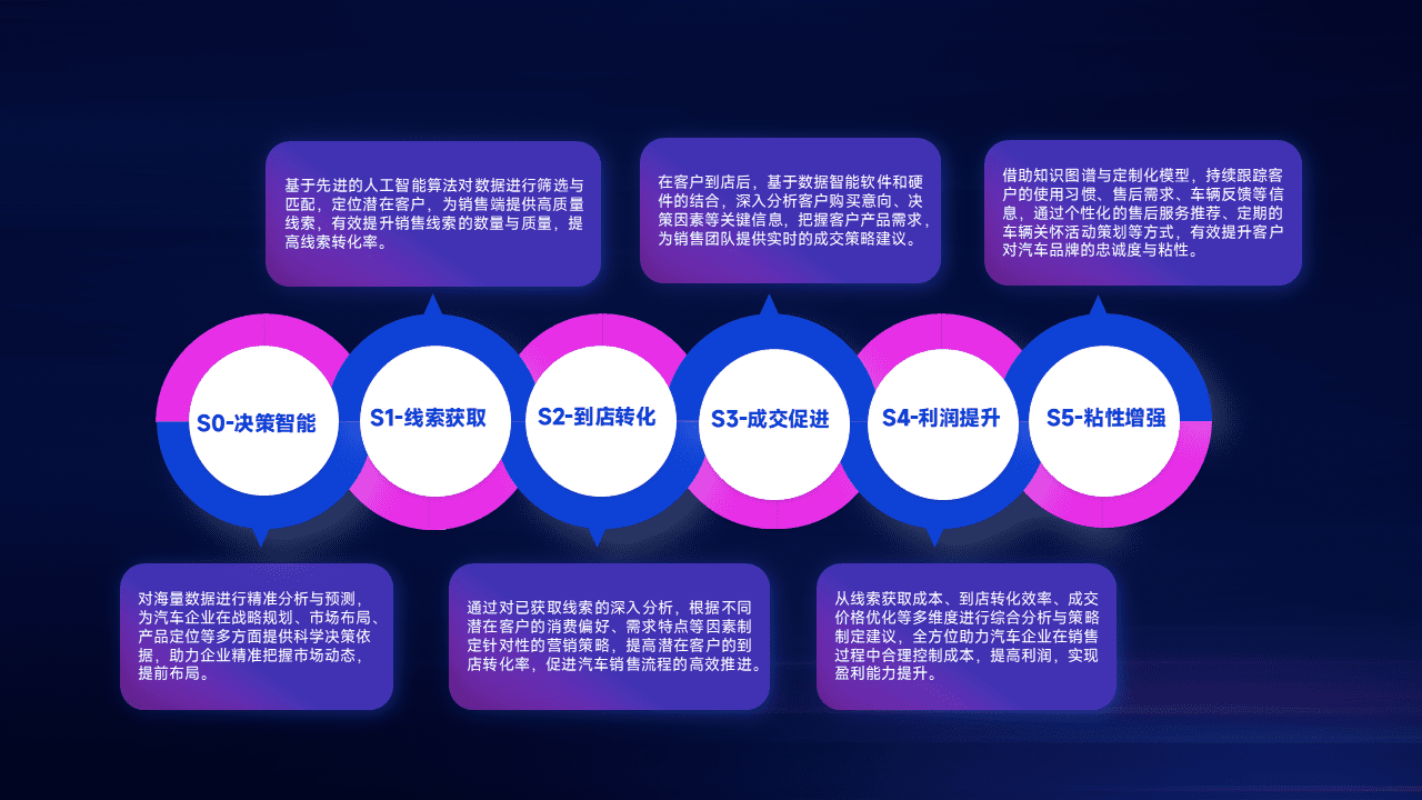 通过拓宽潜在客户来源、、、优化线索分配并提高到店转化率,,以增强销售效率。。同时,,,,利用线索数据不断优化分析模型,,,有效提升转化率,,,扩大营销影响力。。。。